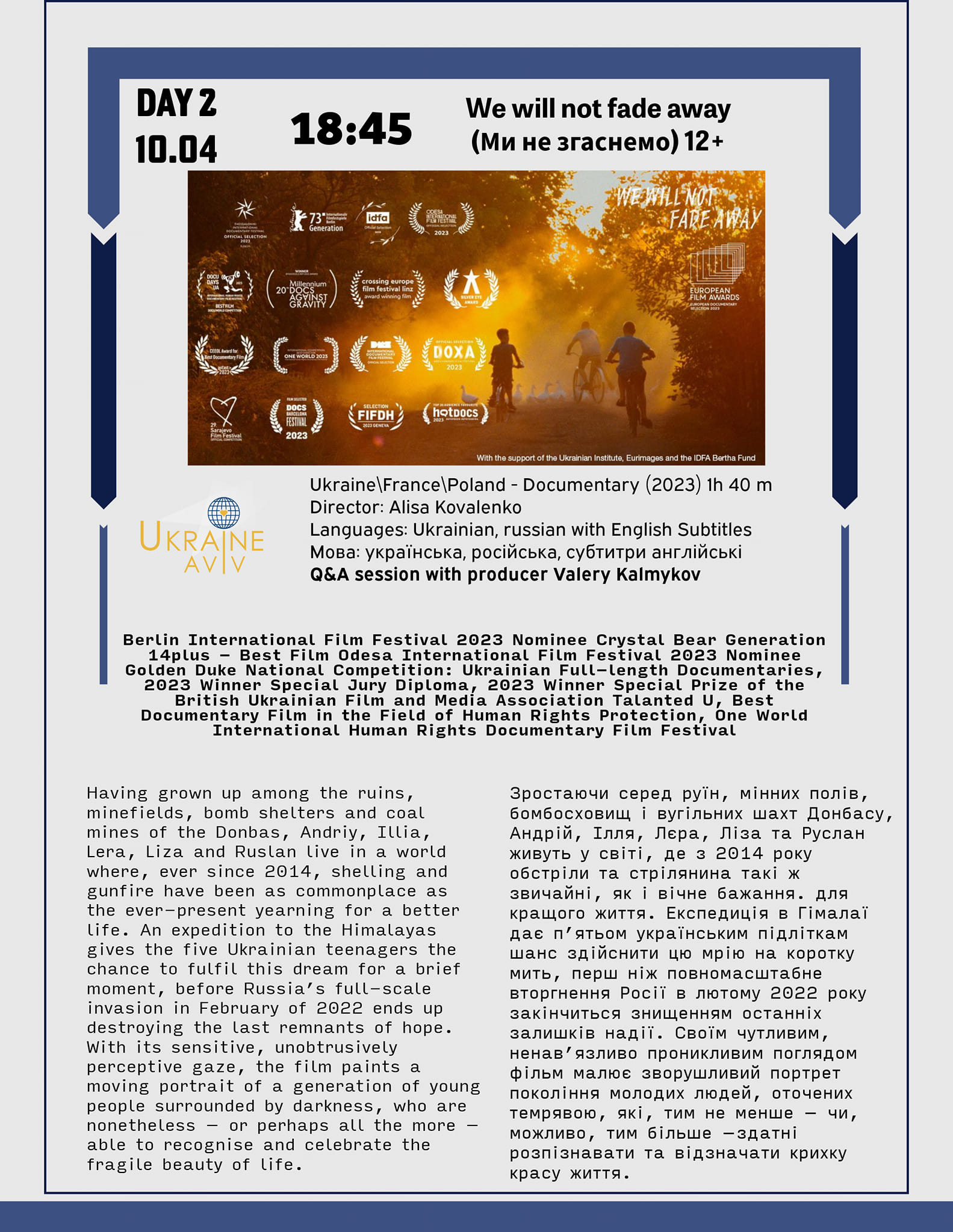 Рады представить Вам программу фестиваля современного украинского кино в Израиле — Ukraine Aviv.