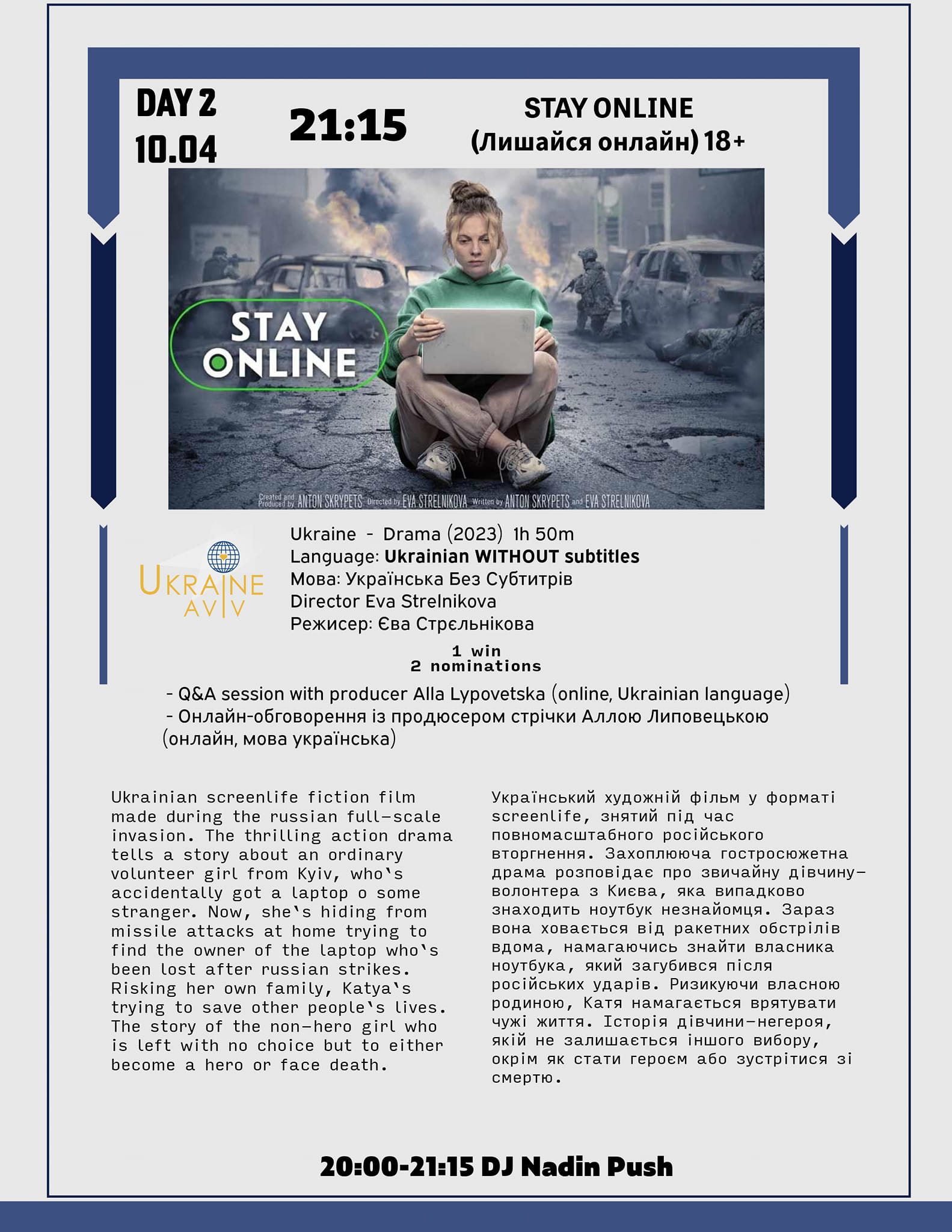 После просмотра состоится онлайн-обсуждение с продюсером фильма Аллой Липовецкой (на украинском языке)